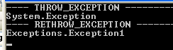 First code will generate exception System.Exception and second code will generate exception exp (in our test sample Exception1).