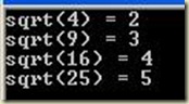 Console.WriteLine(String.Format("sqrt({0}) = {1}", value = 25, Math.Sqrt(value)));