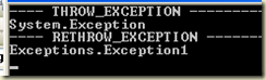 First code will generate exception System.Exception and second code will generate exception exp (in our test sample Exception1).